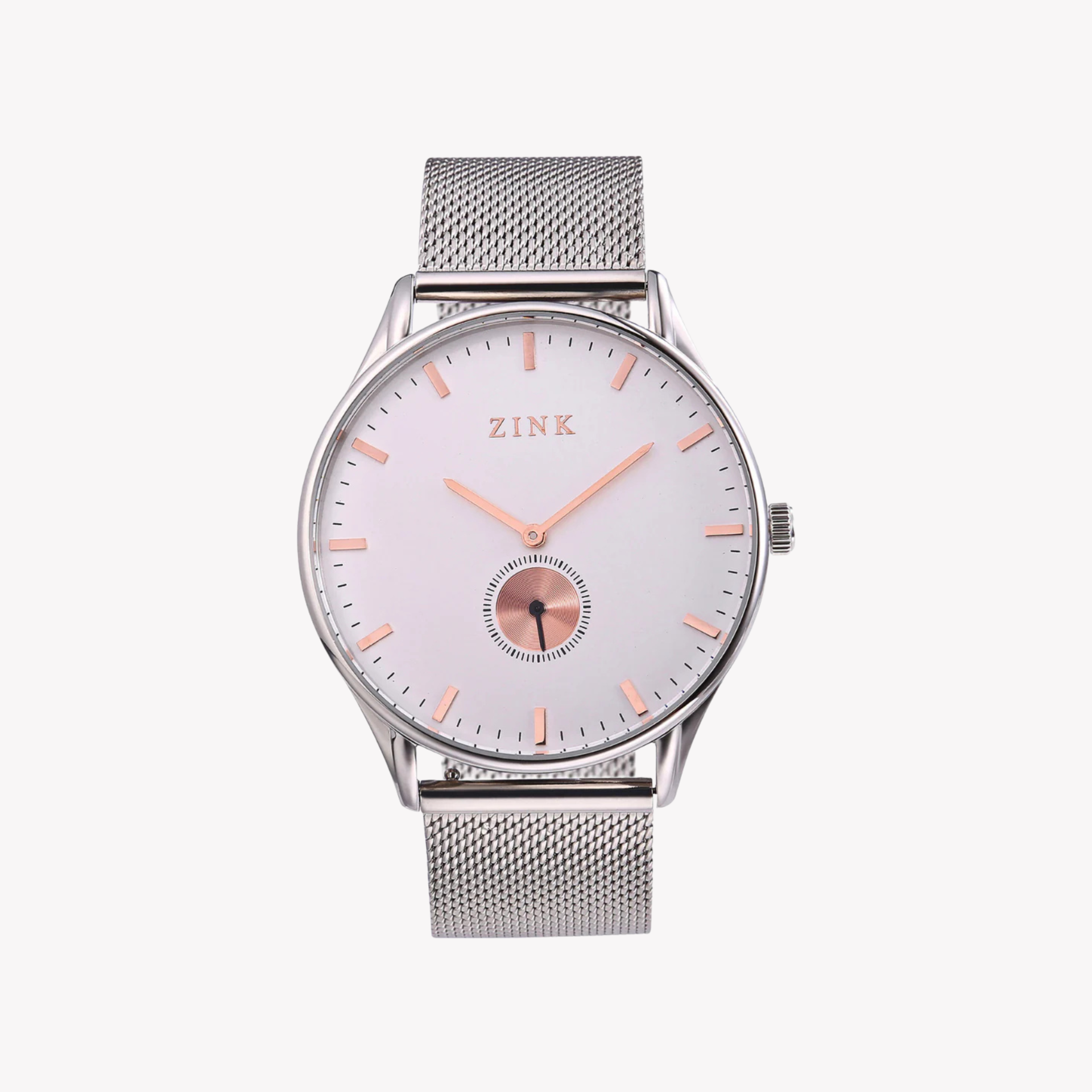 Elevate your accessory game with the ZINK ZK130G5MS-16R. Its striking silver and rose gold dial, combined with a sturdy stainless steel band, makes it a versatile addition to any man's wardrobe. Don’t just tell time—make a statement.